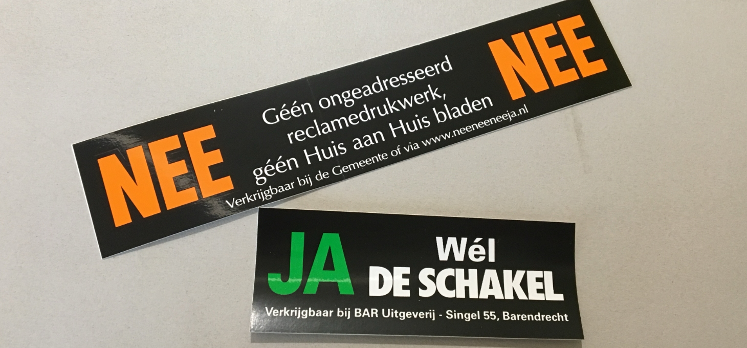 Stickers van de lokale krant van Barendrecht (foto: John Bijl / Periklesinstituut)
